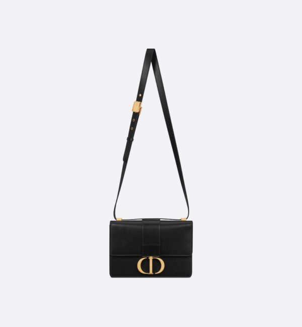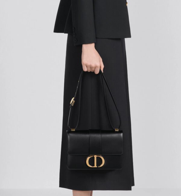 The 30 Montaigne line is inspired by the emblematic address and offers essential pieces that embody the House’s iconic codes. The bag is crafted in black box calfskin for an elegant and modern look. The flap is embellished with a gold-finish metal CD clasp, inspired by the seal of a Christian Dior perfume bottle. Refined details such as an embossed 30 Montaigne signature on the back, define this unique design. Featuring an adjustable leather strap, the 30 Montaigne bag can be carried by hand, worn over the shoulder or crossbody.