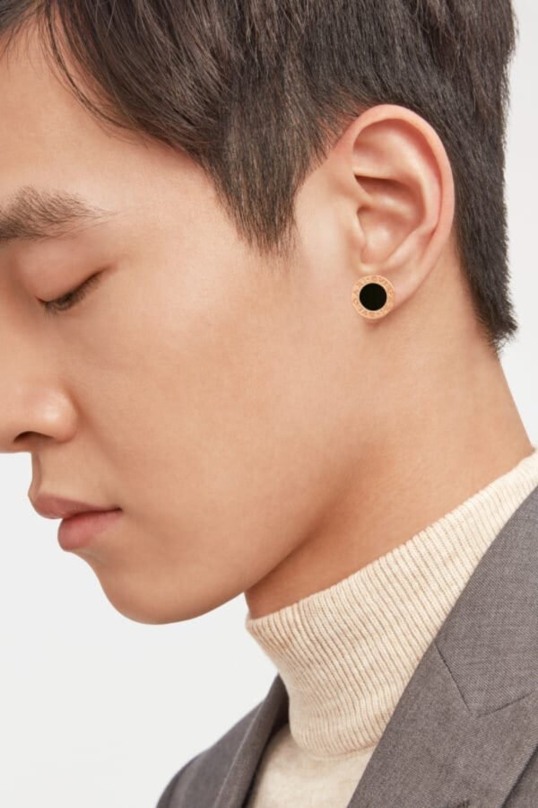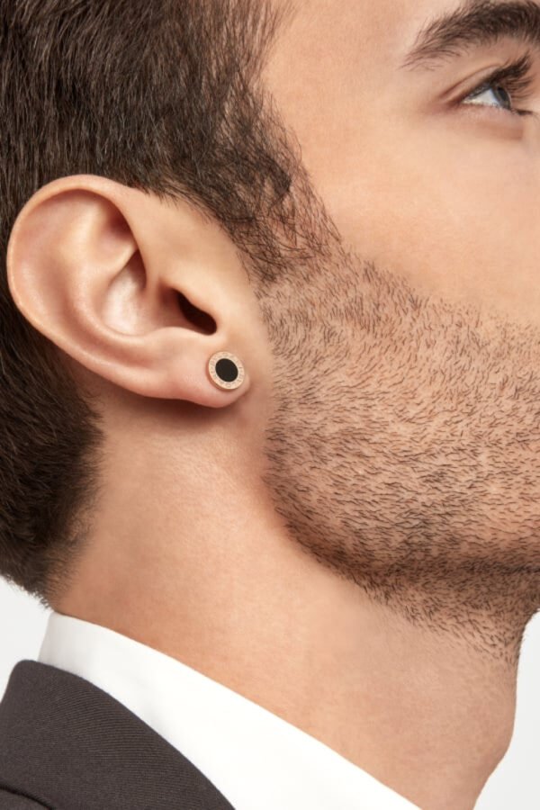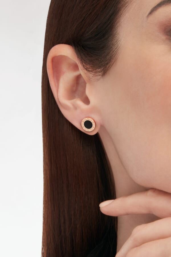 Grown from the Roman roots of the brand into an elegant fusion of culture and modernity, the Bvlgari Bvlgari freely combinable earring is an effervescent, contemporary statement of classiness. The trademark double logo was initially inspired by the curved inscriptions on ancient coins, whilst today it has evolved into playful interpretations. In tune with the collection’s dynamic spirit, the single earring can be paired with different colour and gemstone options, for a truly unique style. Bvlgari Bvlgari 18 kt rose gold single stud earring with onyx.