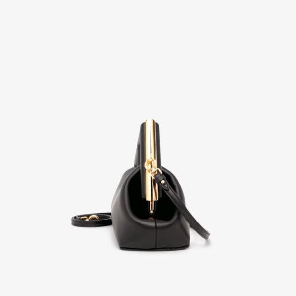 Made of soft, black nappa leather with oversized metal F clasp with tone-on-tone nappa leather bands.
