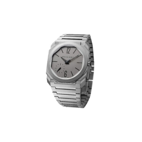 A distinctive expression of daring design and highest precision, Octo fuses Italian creativity and Swiss mastery in the art of watchmaking, with a touch of sophistication. In the 15th and 16th centuries, Italian artists such as Leonardo Da Vinci excelled in creating both innovative and timelessly beautiful masterpieces. Driven by the same genius, Octo combines a unique octagonal design—inspired by the 310 AD Roman Massentius Basilica—with exceptional mechanisms. Pushing the boundaries of watchmaking feasibility while respecting the quest for perfect beauty, the Octo Finissimo Automatic lays a new milestone in the world of horological complications. This exceptional timepiece features a total thickness of just 5.15 mm, with a self-winding movement just 2.23 mm thick and a 40-mm diameter. Octo Finissimo Automatic watch with extra-thin mechanical manufacture movement, automatic winding (platinum microrotor), small seconds (2.23 mm thick), BVL 138 – Finissimo caliber decorated by hand with côtes de Genève, chamfering and perlage finishing, 60-hour power reserve. 40-mm extra-thin titanium case (5.15 mm thick), transparent case back, titanium crown set with ceramic, sandblasted titanium dial, titanium bracelet with three-blade folding buckle. Water-resistant up to 30 meters.