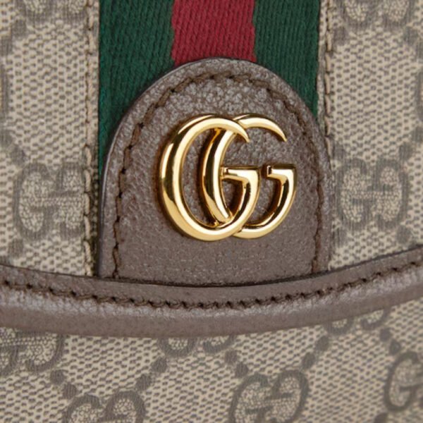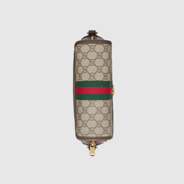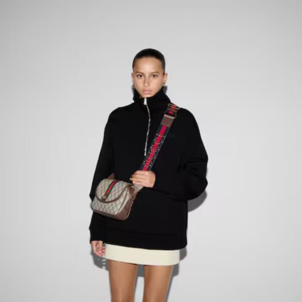 The Ophidia is reinvented in new and unexpected ways. Metal eyelets and studs define the historical silhouette to create a one-of-a-kind take on the archival style. Creating a playful contrast, the small-sized shoulder bag is crafted from the House’s signature GG Supreme in the traditional color combination of beige and dark brown.