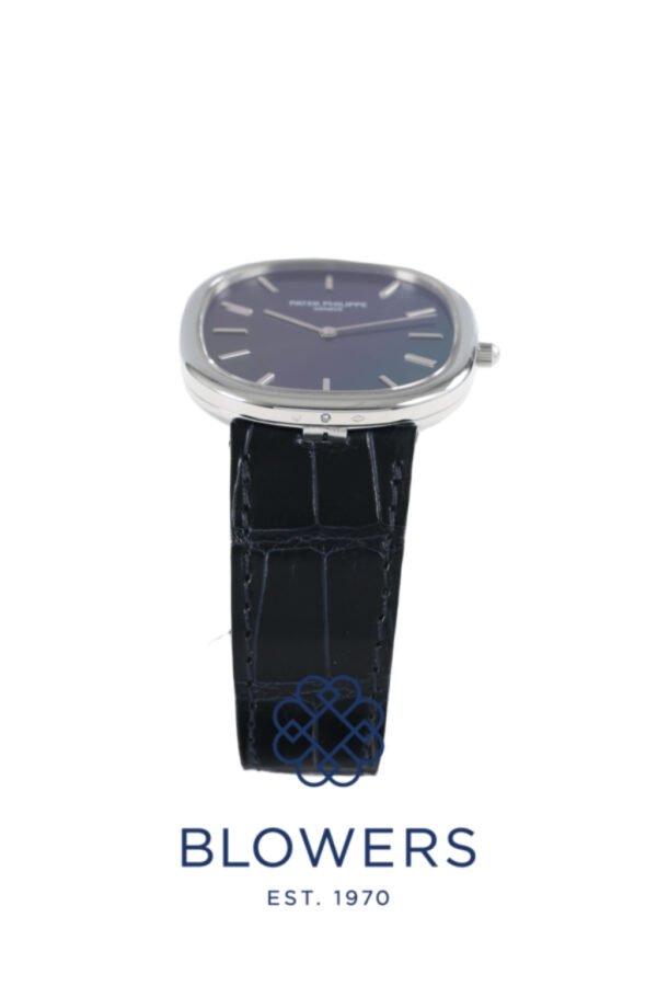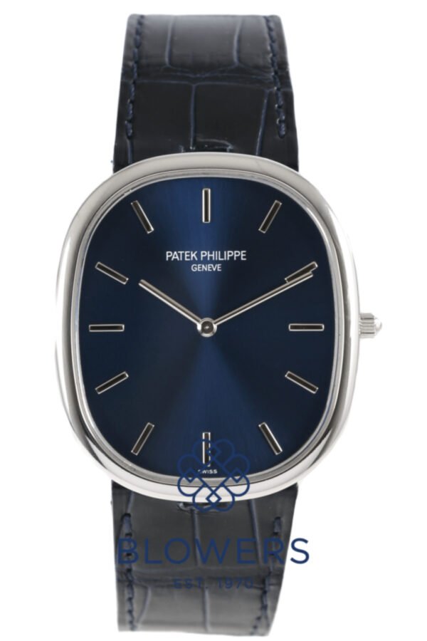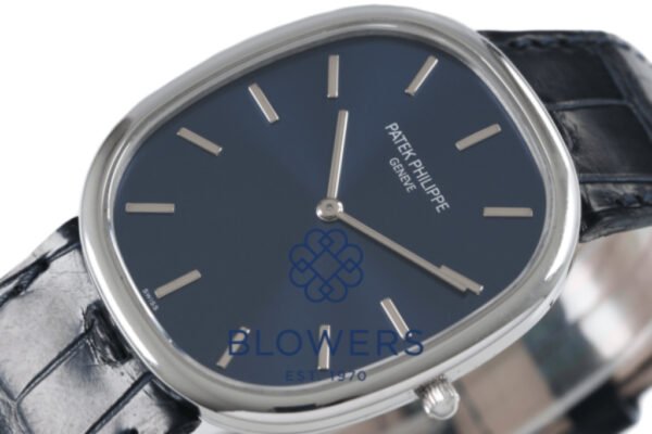 Patek Philippe Golden Ellipse 5738P-001, Platinum, Sunburst Blue Dial, 39 mm