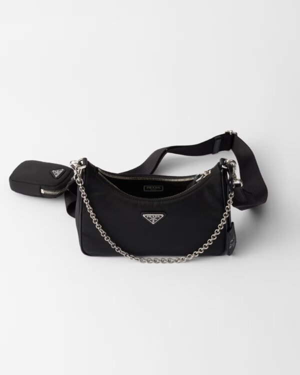 Inspired by the iconic mini hobo bag, the Prada Re-Edition 2005 shoulder bag is made of Re-Nylon: a regenerated nylon yarn (ECONYL®)produced from recycled, purified plastic trash collected in the ocean, fishing nets and textile waste fibers. This versatile bag with Saffiano leather trim comes with a detachable pouch attached to the shoulder strap.