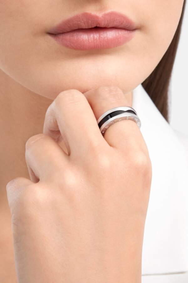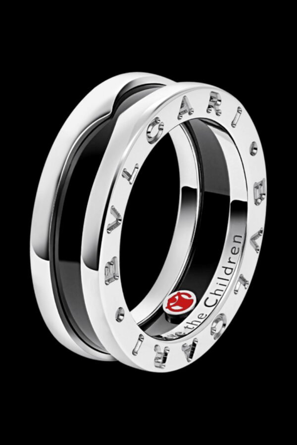 Honouring Bvlgari’s ongoing philanthropic partnership with Save the Children, the ring in sterling silver and black ceramic is inspired by the B.zero1 jewelry collection and engraved with the charity’s logo. Bvlgari will donate 95€ from every sale to support the Save the Children programs worldwide. Save the Children one-band sterling silver ring with black ceramic.