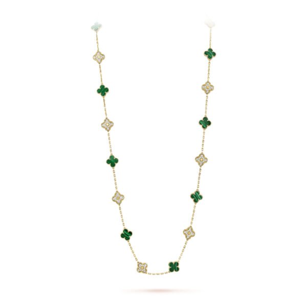 Van Cleef & Arpels vintage Alhambra 20 motifs and malachite long Diamond Necklace